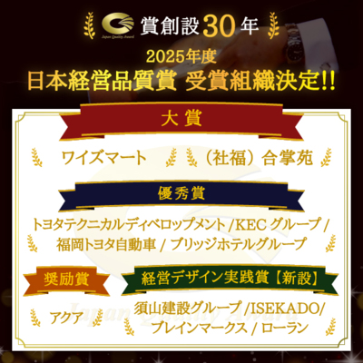 2025年度日本経営品質賞受賞組織を発表しました。